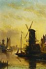 A Summer Landscape with a Windmill at Sunset by Jan Jacob Coenraad Spohler