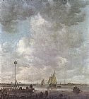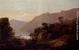 A River Landscape With A Ferry And Figures Mending A Boat by Hermanus Koekkoek Snr