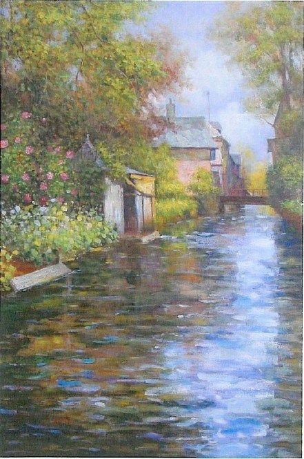 Louis Aston Knight Flowers in Bloom by a River Painting